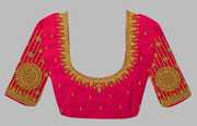Best qualitycomputer work blouse piece of 1 meter length on aaku pattu fabric with hand work blouse. Unstitched blouse piece. Womens wear new arrival aaku pattu fabric embroidery work unstitched blouse piece. It is designed specially to wear in special occassions. It gives a special cool and attractive look on you. blouses to wear on special occassions like mehendi vibes, engagement evenings,cocktail paries, pooja rites. womens wear blouse pieces. unstitched blouse piece. Colour may be look difference, becasue of mobile view and photo shoot.