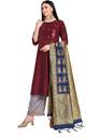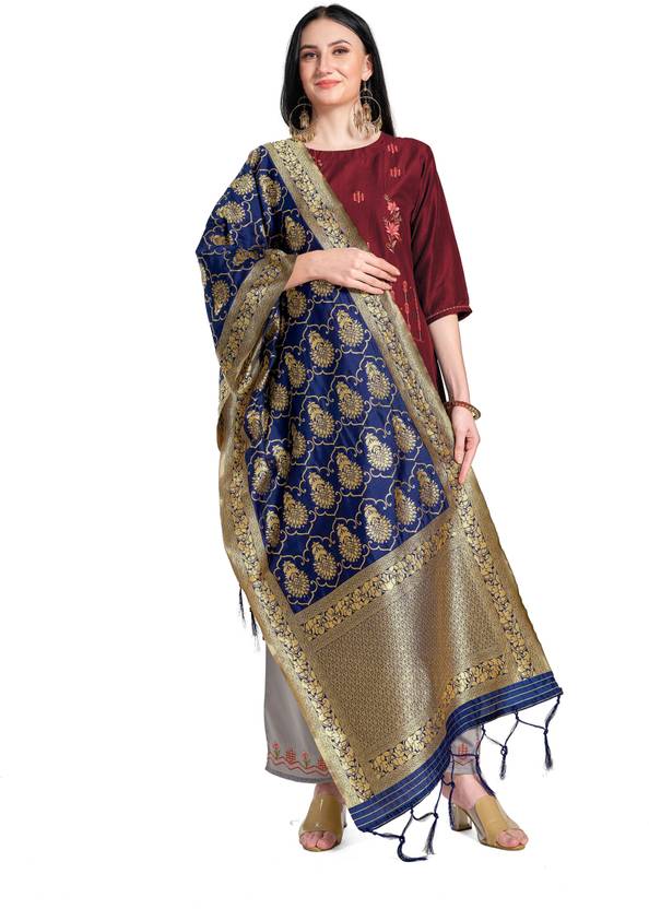 A dupatta that attracts one instantly with its incredibly sophisticated look! This rich silk banarasi woven dupatta is a perfect way to enhance the look of your outfit.