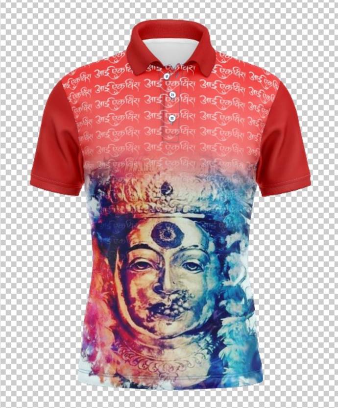 Men Printed, Typography Polo Neck Polyester Red T-Shirt