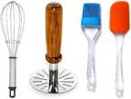 Courtesy of this versatile combo, this kitchen tool set includes a brush, masher, spatula, and whisk. This set provides an array of essential kitchen tools suitable for various culinary tasks. The inclusion of these kitchen essentials ensures efficiency and convenience in various cooking tasks.