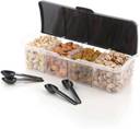 Offering ample storage with a capacity of up to 1,800 ml, these containers can easily store your essentials. With up to four compartments, they are designed to keep your items neatly organised. Each container comes with its own set of up to four spoons, ensuring convenience and ease of use. The multiple compartments allow you to separate different foods, preventing mixing and keeping your meals fresh and appetising.