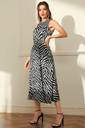 "Spruce up your wardrobe with this Black coloured Women's Printed calf length Dress from Ompax. This Women's calf length Dress is perfect for a day out with friends or a night, get-togethers with family ""Add a touch of magic to your style with our stunning Zebra Printed Calf Length Dress! Made from lightweight delta fabric, this gorgeous dress is designed to keep you cool and comfortable all day long. The flared silhouette and classic round neck with Sleeveless Bodice give it a timeless look, Pair it with your favourite accessories and get ready to slay the occasion in style! Perfect for ethnic wear, this A-line dress is sure to make you look and feel like a princess."" heels and some simple jewellery