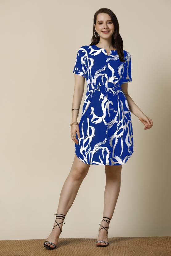 Spruce up your wardrobe with this blue color women’s abstract printed dress from Ompax. This women’s Knee length dress is perfect for a day out with friends or a night get-togethers with family. This abstract printed A-line dress is a beautiful addition to your western dress collection. This attractive and stylish dress for women is crafted from lightweight cotton blend fabric, this abstract printed women dress is featured by a notch-neckline, short sleeves, and straight silhouette with self-fabricated belt that adds a touch of prettiest look. Paired it with a pair of boots some day, and hoop earrings some evening.