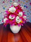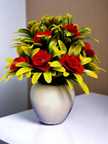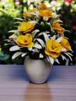 oms Artificia Velvetl Flower Pot Apple Shaped for Your Home Decoration Pink, Yellow Rose Artificial Flower with Pot (22 cm, Pack of 1, Flower with Basket)