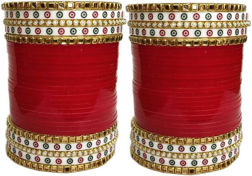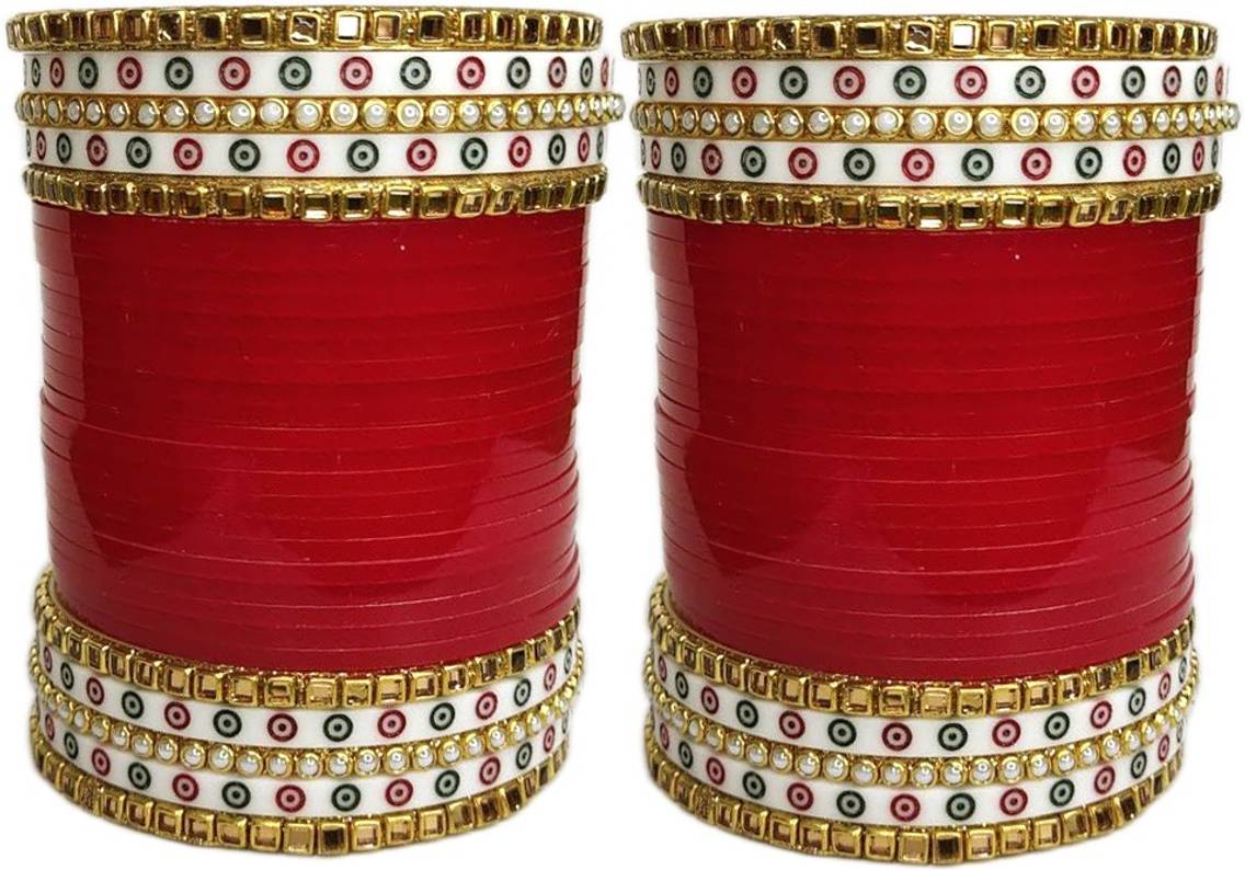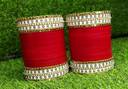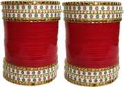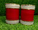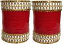 Fancy Bridal Punjabi Choora Maroon Zicron Gemstone Bangles Set For Women