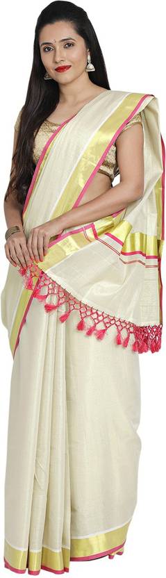 Solid/Plain Kasavu Tussar Silk Saree (Cream)