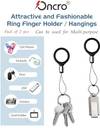 ONCRO Soft Silicone Round charm Keychain Finger Ring for Mobile Phones holder Hanging Phone Charm (Black and Silver)