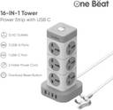 One Beat Tower 12 Socket Extension Boards (White, 2 m, With USB Port)
