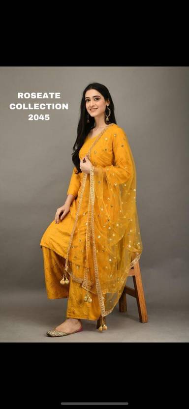VISCOSE RAYON NEW DESIGNER EMBRODERY WORK KURTA WITH DUPTTA AND PANT SETS