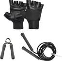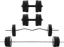 Includes:1 glove, 1 rope, 1 grip, 1 straight rod, 1 curl rod, 2 dumbbell rods, 4 plates 5kg, 4 plates 3kg, 4 plates 2kg, 4 nuts, 4 clips