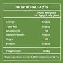 100ml of brewed tea 2g typically gives - Energy - Traces Total Fat - Traces Cholesterol - Nil Carbohydrates - Traces Sugar - Nil Protein - Traces Polyphenols - 0.36g *Based on an infusion brewed with 120 ml boiled water and 2g Tea