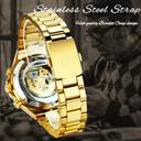 Triangular Silver Shield Automatic Mechanical Watch, the three-dimensional triangle is unique and unforgettable, fully demonstrate your unrestrained and unique personality, Golden skeleton dial You can see each precision part rotate accurately.