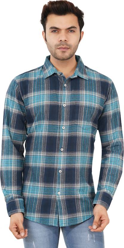 Onfocus Men Checkered Casual Blue Shirt