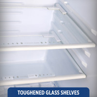 The toughened glass shelves of this home appliance can hold containers, vessels, and fruits and vegetables of up to 150 kg of weight.