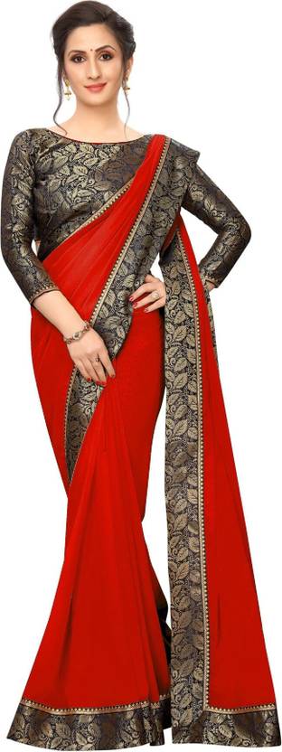 K.C Solid/Plain Bollywood Georgette Saree (Red, Blue)