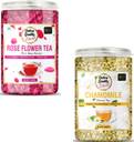 Online Quality Store Organic Rose Flower Tea, Chamomile Flower Tea Combo - 100g Each Pack | Chamomile, Rose Herbal Tea Plastic Bottle (2 x 100 g)