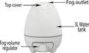 Basic Parameters Rated voltage: 110-220V 50/60Hz Rated Power: 25W ? 35W ? Tank Capacity: 2-3.5 L Maximum evaporation: 380ML-/H Noise: <25dB Basic Parameters Rated voltage: 110-220V 50/60Hz Rated Power: 25W ? 35W ? Tank Capacity: 2-3.5 L Maximum evaporation: 380ML-/H Noise: <25dB Simple Operation The body is horizontally arranged in the appropriate places. Remove water tank, water tank inversion lid of the box, into clean tap water. For convenience will cover is tightly screwed, the water tank is not water leakage shall prevail (without screwing tight). Wipe the water around the glob, installed water tank. Access 220V AC 50Hz power supply, a clockwise turn knob switch, according to production needs to adjust the mist size indicator lights, humidification, humidification quantity can be adjusted, the built in dream electronic lamp, built-in safety device of automatic protection. When the water tank is not water, sensors to stop working, spray dry mouth, indicator lights, such as to continue to use, please cut off the power supply. Back to the water tank. Operation of adding water Unscrew the water tank screw to fill the water Unscrew the water tank screw to fill the water Humidifier water tank Humidifier cradle Please use the clean water under 40 degree C. Operation Note 1.Must not be to the water tank and the tank is added with 40 degree C above the water, in order to avoid discoloration or deformation.2.Do not let water from the outlet flow of human body. The outside of the body of water, use a cloth to clean the. 3.In the indoor temperature at 0 degree C dry circle, please will sink and water in the water poured out, so that the water freezes, result in damaging components. 4. Please don’t be metal goods, chemicals, such as detergent into the sink, otherwise, will appear the bad atomizing phenomenon.
