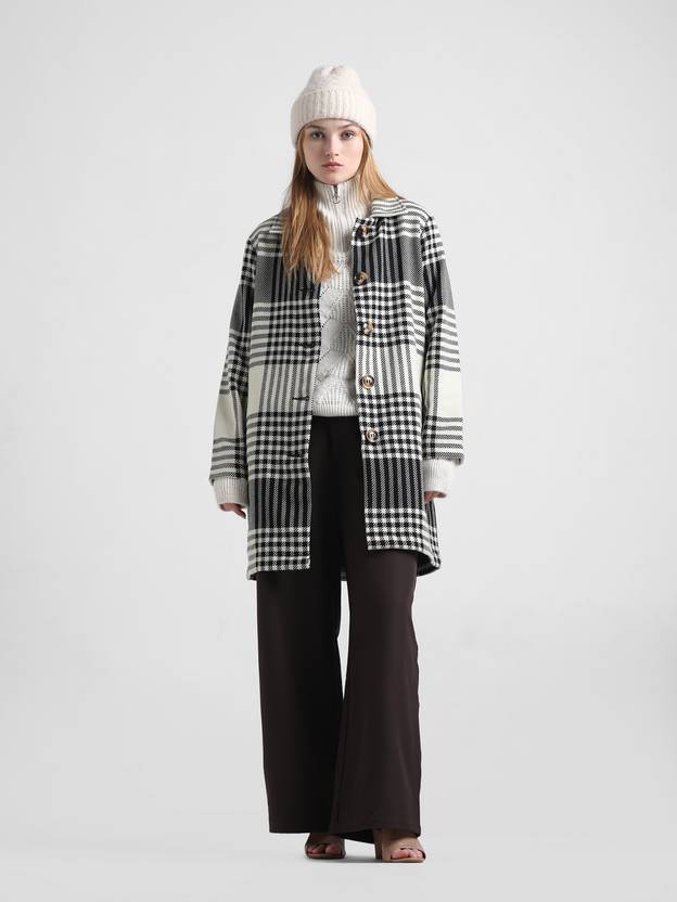 65% Polyester,20% Wool,10% Acrylic,5% UK Fibres Checkered Coat For Women