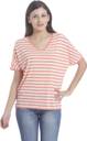 Casual Regular Sleeves Striped Women White, Orange Top