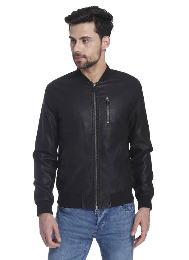 Men Solid Leather Jacket