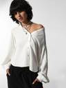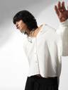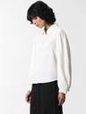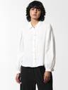 Shirt in soft cotton muslin with a collar, buttons down the front and a yoke with a box pleat at the back. Wide embroidery details long sleeves.