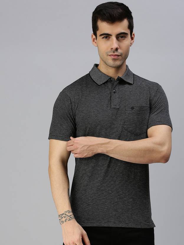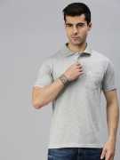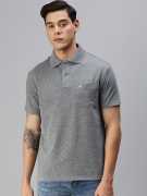 Black Melange solid T-shirt, has a polo collar, button closure and short sleeves. Made of cotton, you 'll love the high-quality fit and feel of this ONN tee. You 'll feel entirely at ease in this Black Melange piece on top of a relaxed-fit chino and slip-on tennis shoe when youre going out shopping or catching a movie.