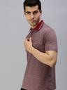 Maroon solid T-shirt, has a polo collar, button closure and short sleeves. Made of cotton, you 'll love the high-quality fit and feel of this ONN tee. You 'll feel entirely at ease in this Maroon piece on top of a relaxed-fit chino and slip-on tennis shoe when youre going out shopping or catching a movie.