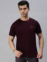 Men Solid Round Neck Pure Cotton Purple T-Shirt