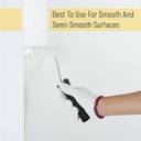 The roller frame features an ergonomic handle designed for comfort and control, reducing hand fatigue during extended use.