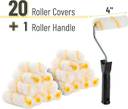paint roller set comes with one sturdy 4-inch roller frame and 20 interchangeable roller covers, providing ample supplies for several paint jobs or color changes without the need for immediate cleaning.