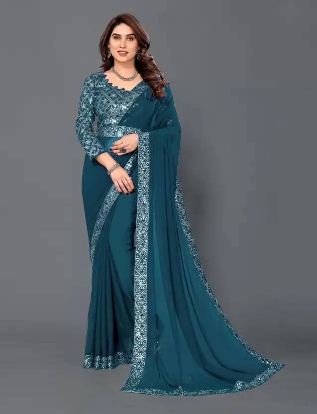 ONTIC LIFESTYLE Embroidered Bollywood Chiffon, Georgette Saree (Multicolor)
