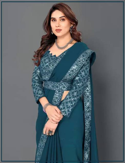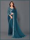 ONTIC LIFESTYLE Solid/Plain Bollywood Chiffon, Georgette Saree (Blue)