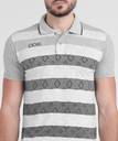 Men Striped Polo Neck Polycotton Grey T-Shirt