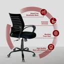 Featuring a moulded foam seat, this office chair ensures a cushioned and supportive sitting experience. And, sporting a mesh backrest, it allows for airflow, keeping you cool and sweat-free throughout the day. And, the sturdy base provides enhanced support while the matte finish adds a sleek, professional look. Also, the sweatproof and breathable material ensures comfort, preventing heat and moisture buildup, making this chair suitable for long hours in both warm and cool environments.