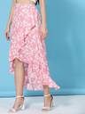 Oomph! Floral Print Women Flared Pink Skirt