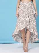 Boost your style quotient by wearing this pretty skirt. You can effortlessly match it with embellished heels, a solid clutch, and star-studded earrings.