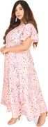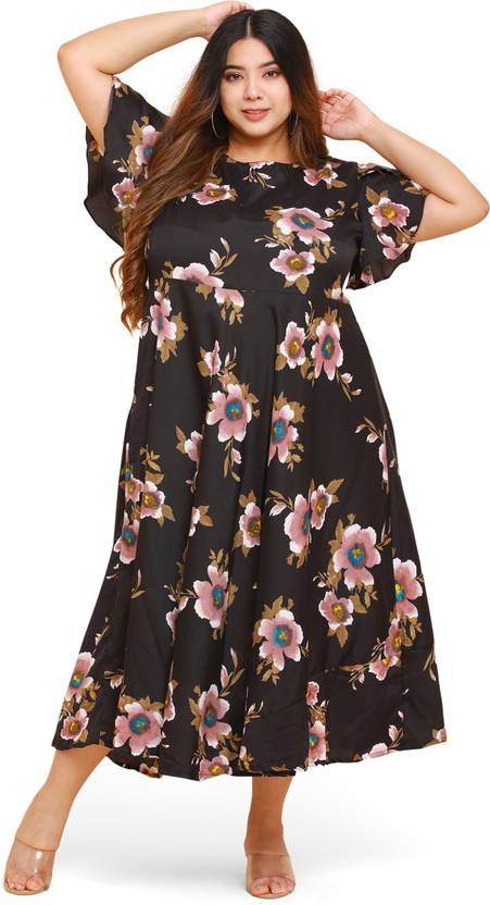 Dress Style: Ankle length A-line dress with butterfly sleeves and boat neck. Fabric Style: Floral Printed Fabric. Styling Tip: Can be be styled both as a breezy casual outfit and a playful party outfit.. Garment Fit: Garment is made with relaxed fit. Model Model is height 5'9" with bust 34 and is wearing size S.. Fabric Type: Garment is made of crepe, which drapes well on all body types. Wash Care: First Wash Dry Clean, thereafter Hand wash