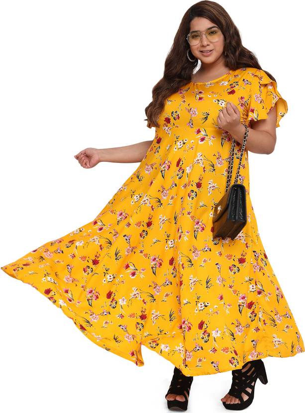 Dress Style: Ankle length A-line dress with butterfly sleeves and boat neck. Fabric Style: Floral Printed Fabric. Styling Tip: Can be be styled both as a breezy casual outfit and a playful party outfit.. Garment Fit: Garment is made with relaxed fit. Model Model is height 5'9" with bust 34 and is wearing size S.. Fabric Type: Garment is made of crepe, which drapes well on all body types. Wash Care: First Wash Dry Clean, thereafter Hand wash