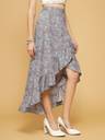 Long high-low wrap skirt with ruffle detail on hem and elastic on waist band. Fabric is crepe which is light weight, drapes well and is wrinkle free. Floral print is perfect for spring & summer. Suitable for casual wear, summer wear, beach wear and festive wear. Suitable for skirts for women western wear, skirt for women western wear, women skirts western, long skirts for women western wear, wrap skirts for women, wrapper skirt for women, long skirt, ,