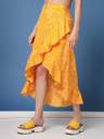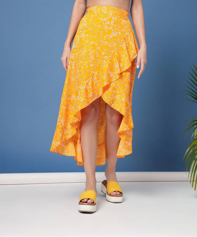 Long high-low wrap skirt with ruffle detail on hem and elastic on waist band. Fabric is crepe which is light weight, drapes well and is wrinkle free. Floral print is perfect for spring & summer. Suitable for casual wear, summer wear, beach wear and festive wear. Suitable for skirts for women western wear, skirt for women western wear, women skirts western, long skirts for women western wear, wrap skirts for women, wrapper skirt for women, long skirt, ,