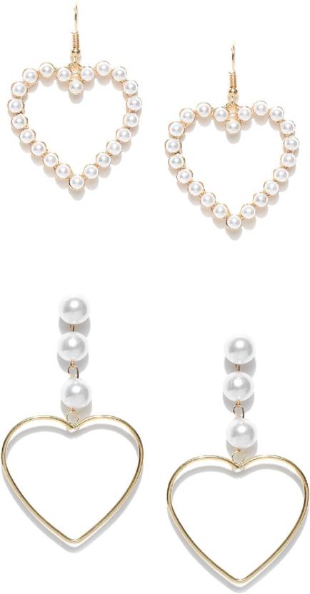 Pearl & Uncut Stones, Drop Earrings, Party Blings, Pearl, Hearts