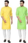 Each kurta in this pack features a classic design adorned with intricate patterns and a touch of cultural charm. The added convenience of a pocket in the kurta adds functionality to the ensemble, allowing you to carry small essentials effortlessly.