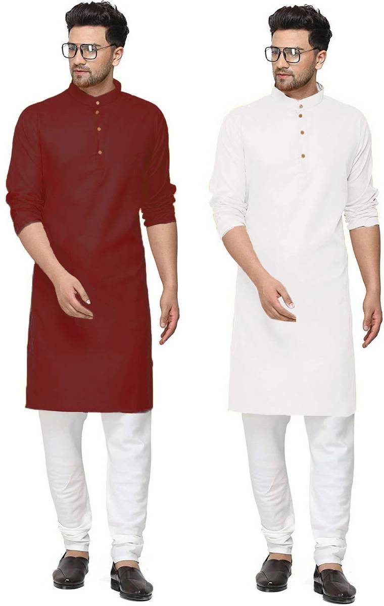 Each kurta in this pack features a classic design adorned with intricate patterns and a touch of cultural charm. The added convenience of a pocket in the kurta adds functionality to the ensemble, allowing you to carry small essentials effortlessly.