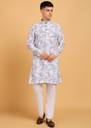 Perfect as a party wear option or for traditional gatherings, this kurta pyjama set with a Nehru jacket is a must-have in any wardrobe. Pair it with mojari shoes for a complete ethnic look that exudes grace and refinement. Available in multiple sizes, this set ensures a perfect fit for every man. Embrace the essence of Indian ethnic wear with this stylish and comfortable ensemble.