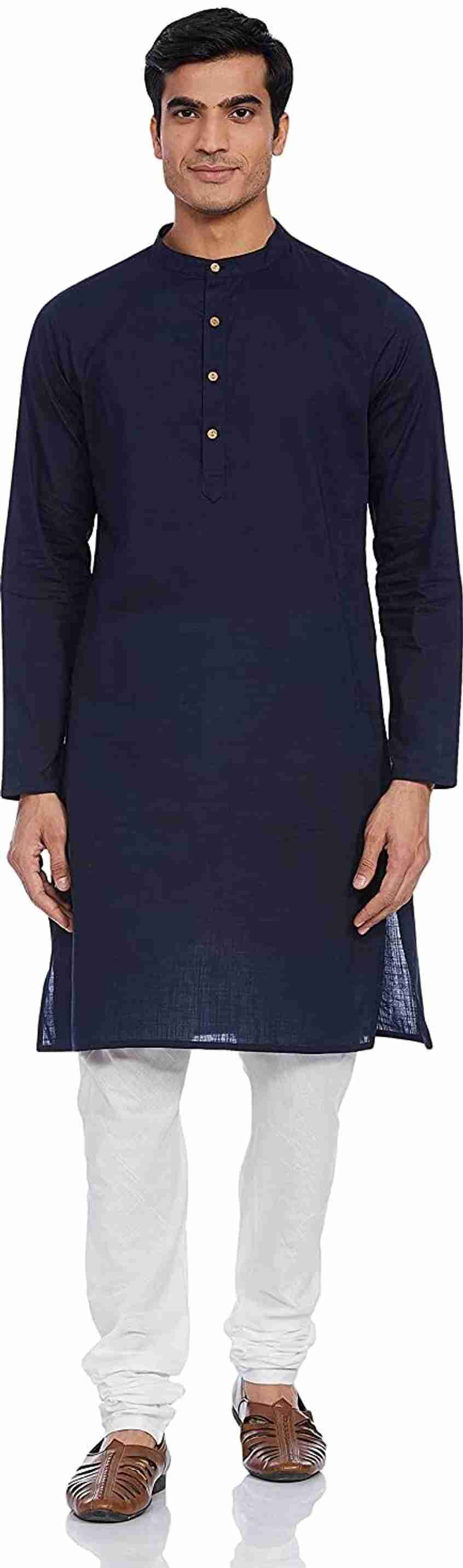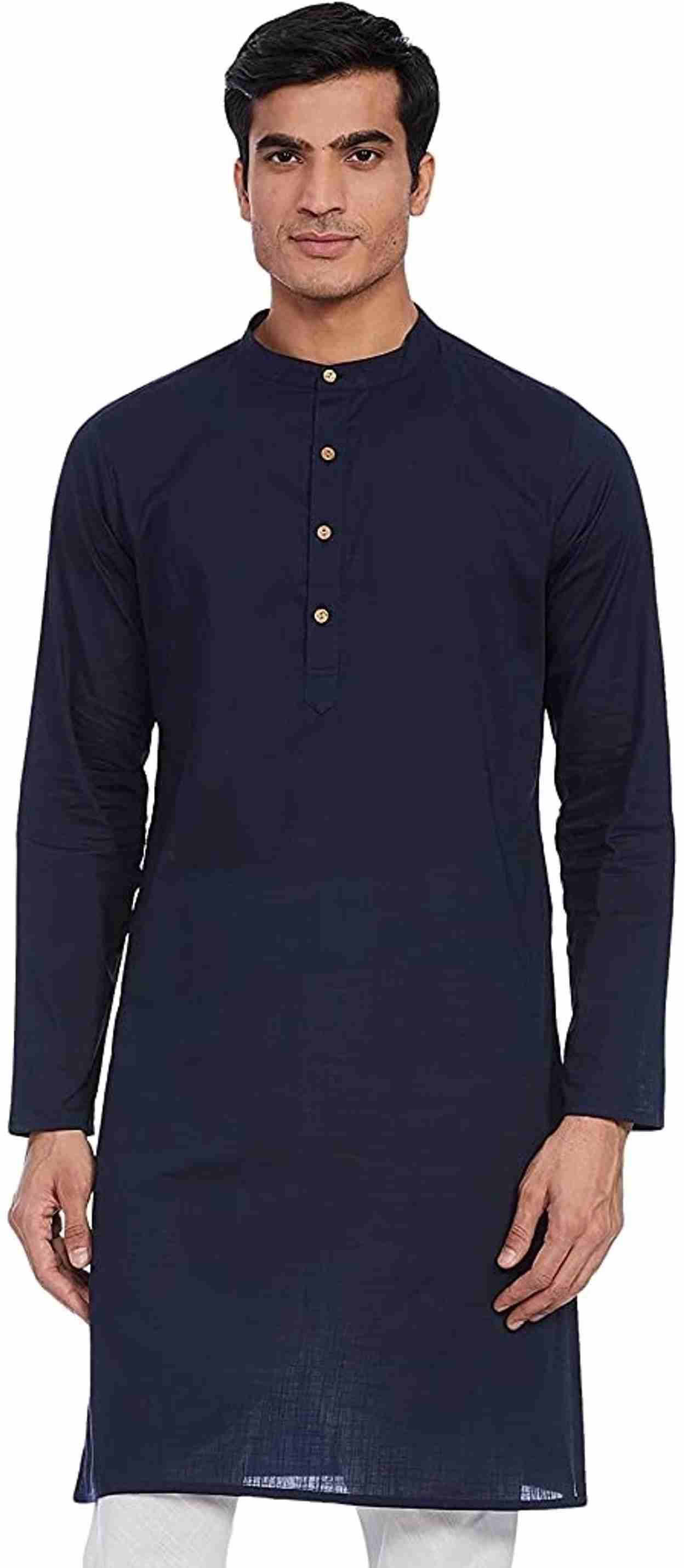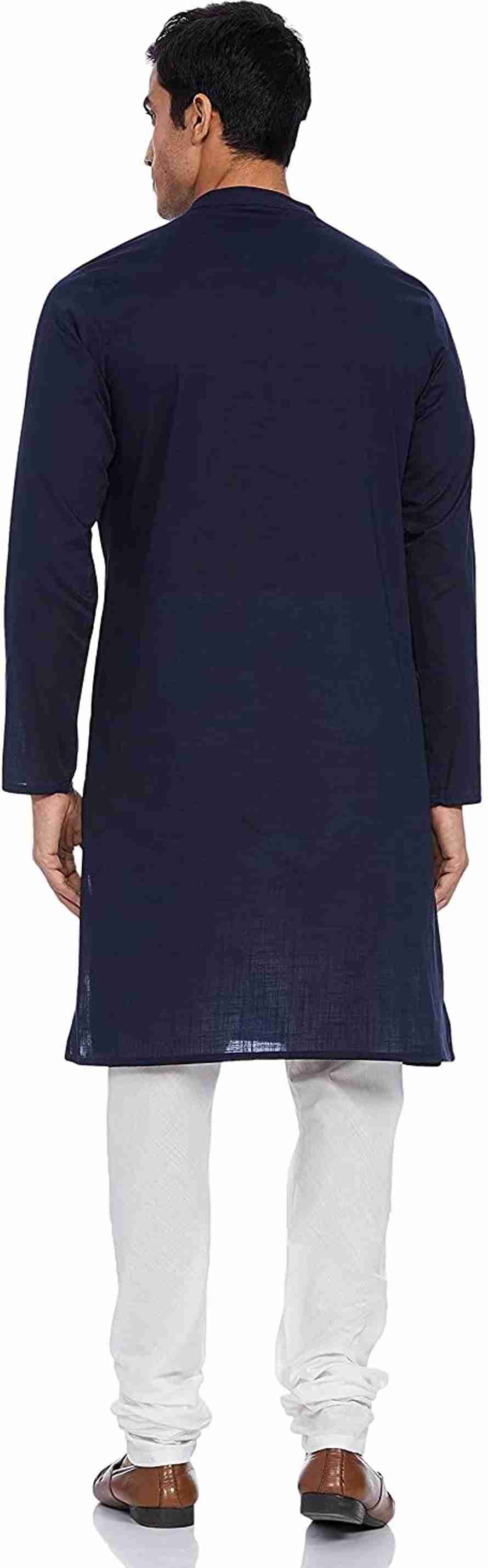 Men Solid Cotton Blend Straight Kurta (Dark Blue)