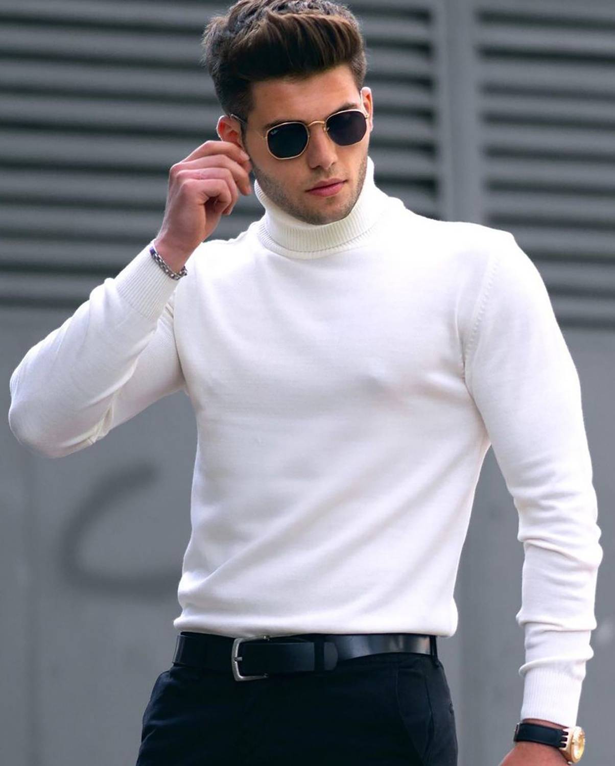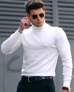 OOSH White Solid High Neck Full Sleeve Casual T-Shirt