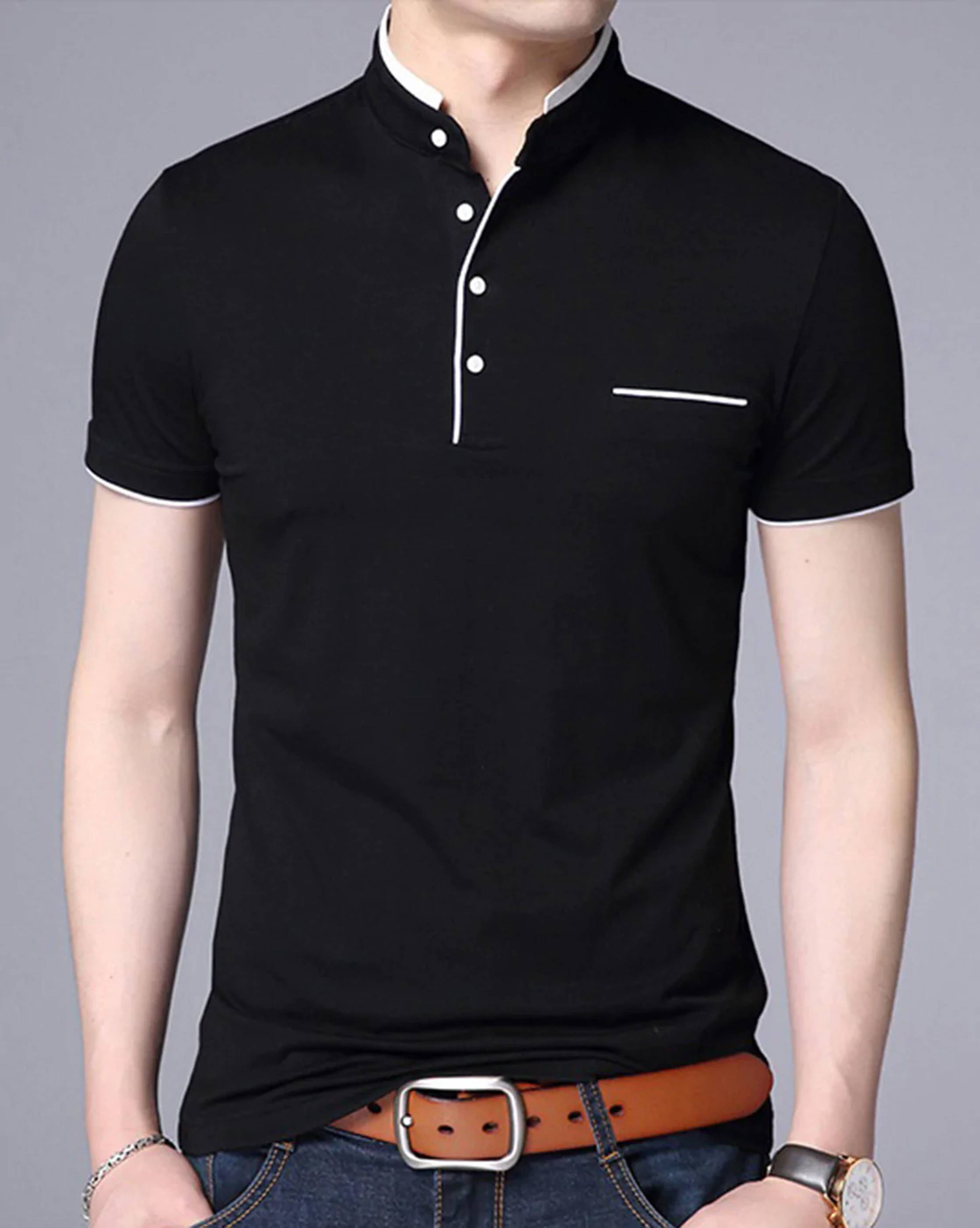 Oosh Solid Men Mandarin Collar Black T-Shirt