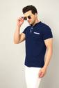 Oosh Solid Men Mandarin Collar Blue T-Shirt