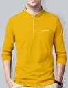 Oosh Solid Men Mandarin Collar Yellow T-Shirt