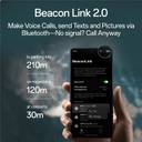 Make voice calls, send texts and pictures via Bluetooth—no network needed. No signal? Call anyway. 210m in parking lots 120m on mountains 30m at concerts "